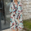 Farbenfrohes Kleid mit 3/4-Ärmeln und Vintage-Blumendruck und Taschen