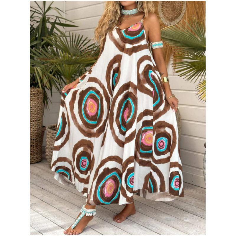 GENIESSEN SIE DEN ENTSPANNTEN BOHO-STIL – Dieses Kleid besticht durch einen künstlerischen Boho-Print, der eine freie, unbeschwerte Stimmung vermittelt und Ihrem Look mühelosen Charme sowie optische Spannung verleiht. Perfekt für Strandtage, Wochenendausflüge oder den entspannten Alltagslook – das markante Muster bringt Persönlichkeit in Ihre Sommergarderobe, ohne Ihren natürlichen Stil zu überladen.