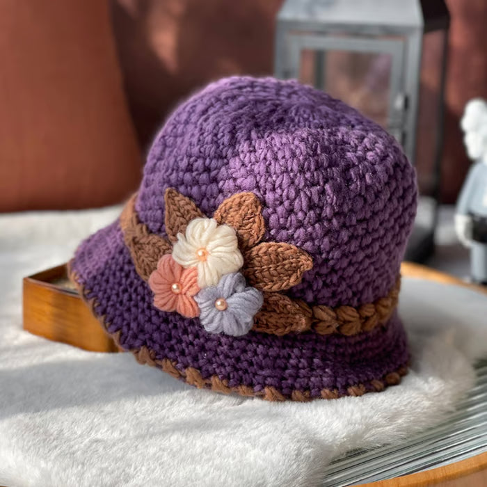1* Französisch verdickte Wollmütze mit Blumenmuster für Damen