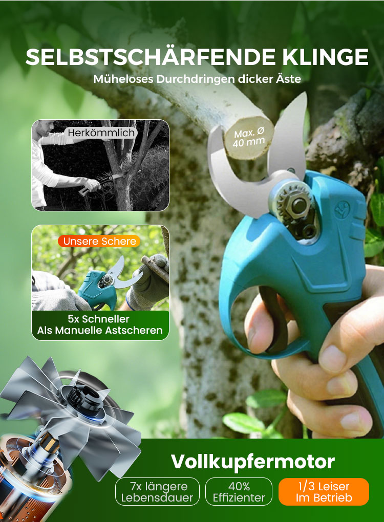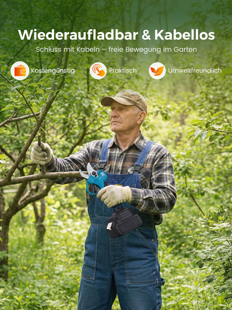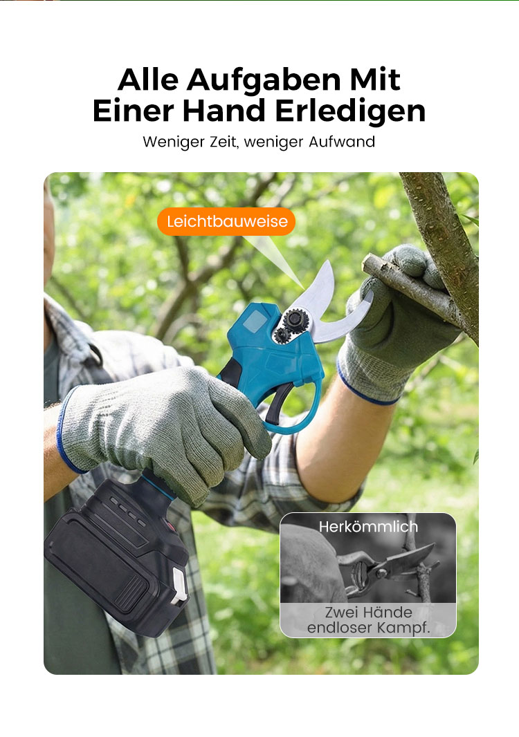 🔥 60% RABATT! ✨ ELEKTRISCHE GARTENSCHEERE - Akku & 10mm Schnittkapazität, 2h Schnellladung, Ergonomisch für Garten und Obstgarten 🌿🔋