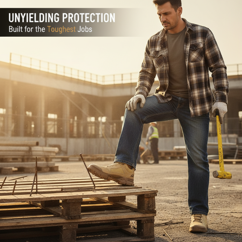 ANTI-STURZSCHUTZ - Ausgestattet mit einer robusten Zehenkappe schützen diese Sicherheitsarbeitsschuhe Ihre Füße vor Stoß- und Druckgefahren in anspruchsvollen Umgebungen und gewährleisten maximalen Schutz vor herabfallenden Gegenständen und schweren Maschinen, ohne den Komfort bei langen Schichten zu beeinträchtigen.