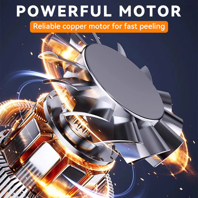 LEISTUNGSSTARKER MOTOR MIT KUPFERWICKLUNG – Ausgestattet mit einem leistungsstarken Motor mit Kupferwicklung garantiert dieser elektrische Schäler ein effizientes und schnelles Schälen verschiedener Früchte und Gemüsesorten. Der Motor liefert konstante Leistung, ermöglicht müheloses Schälen selbst kleiner Früchte ohne Stillstand oder Leistungsverlust. Seine Langlebigkeit und Zuverlässigkeit machen ihn zu einem zeitsparenden Helfer in jeder Küche.