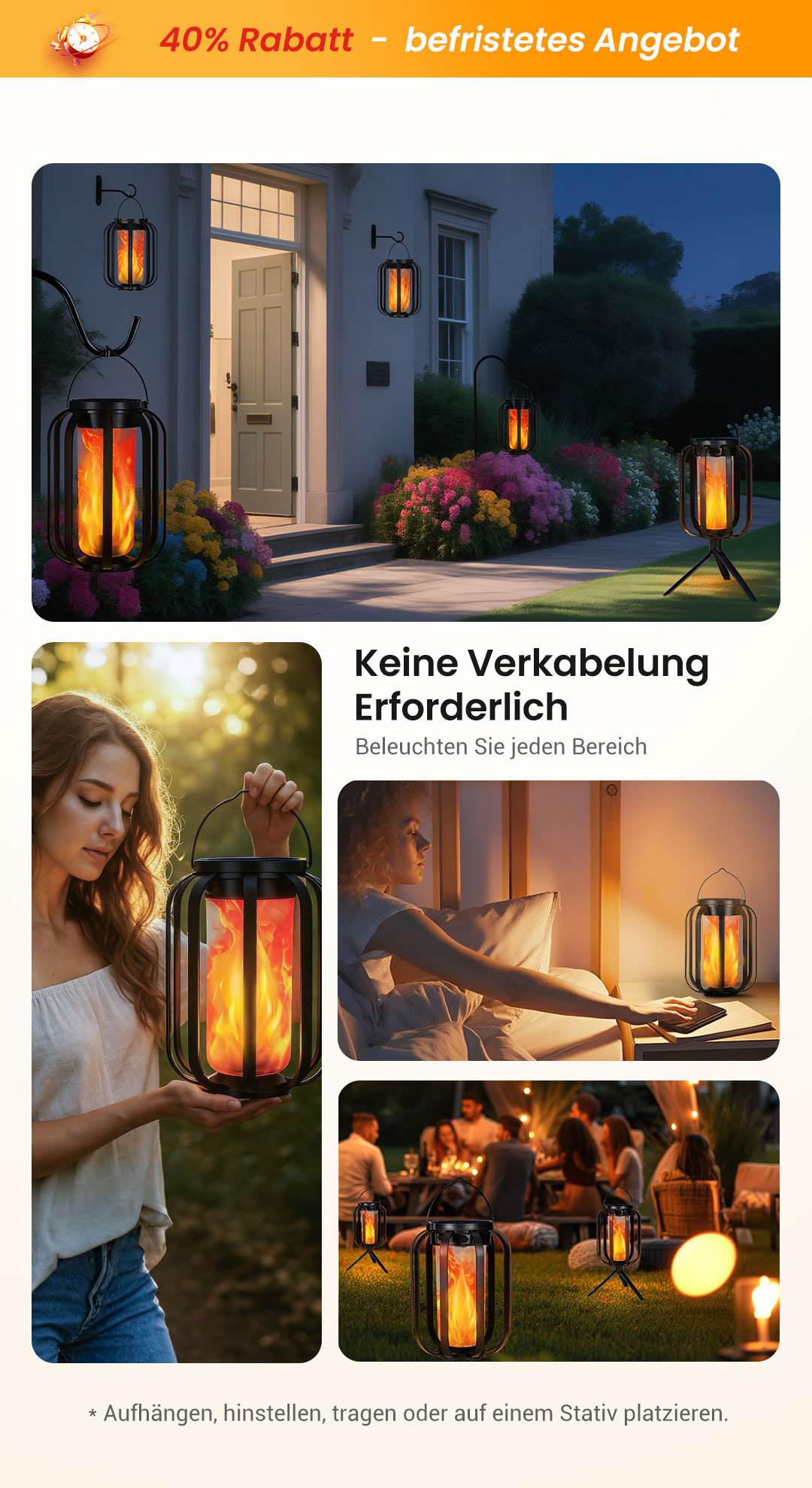 🔥Upgraded flackernde Flamme Solar Laterne im Freien wasserdichtes Licht