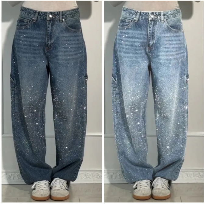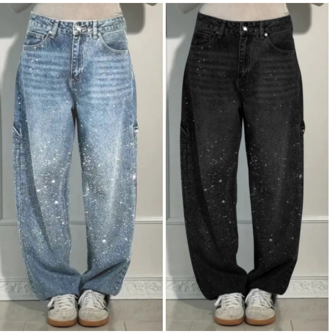 ✨👖Strassjeans mit geradem Bein für Frauen
