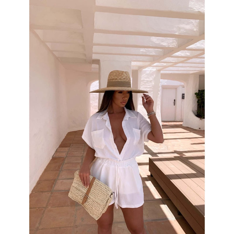 V-AUSSCHNITT-DESIGN – Stilvoll und bequem : Dieses zweiteilige Loungewear-Set verfügt über einen tiefen V-Ausschnitt mit einer Knopfreihe und eine entspannte Silhouette, die jeder Figur schmeichelt. Zwei Brusttaschen vorne sorgen für einen funktionalen und modischen Touch. Die atmungsaktiven kurzen Ärmel und die weichen Linien schaffen ein stilvolles und dennoch lässiges Alltagsoutfit, das sich zum Entspannen oder Ausgehen eignet.