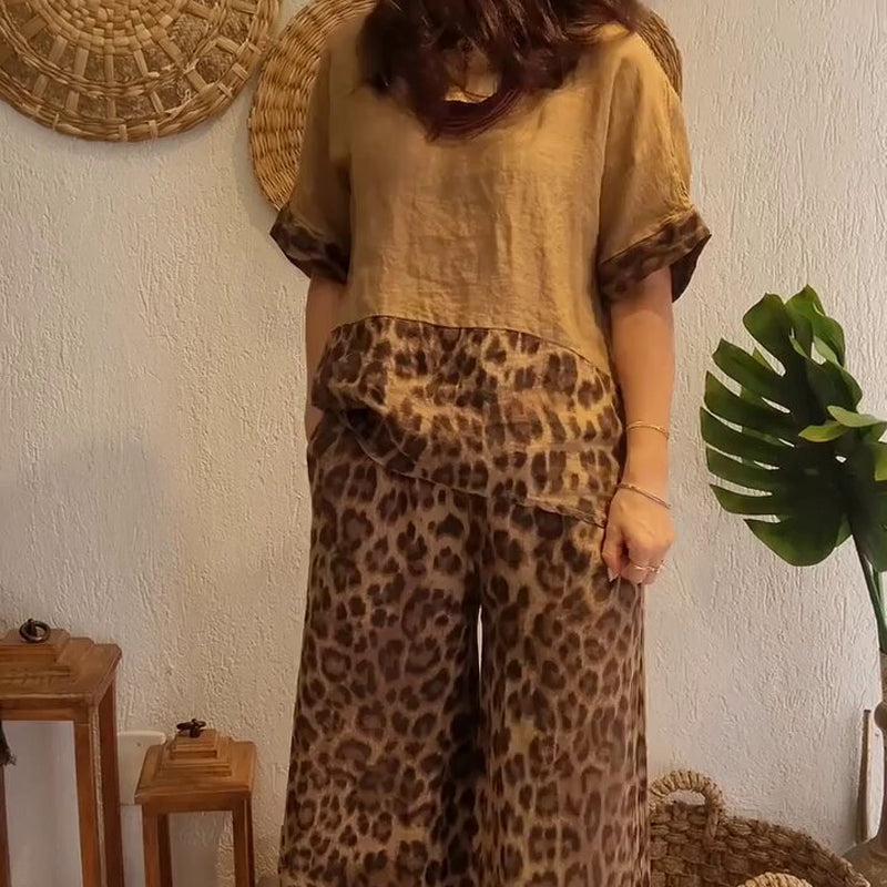 đ„Stilvolles zweiteiliges Set mit kurzĂ€rmligem Patchwork-Oberteil und Hose mit weitem Bein