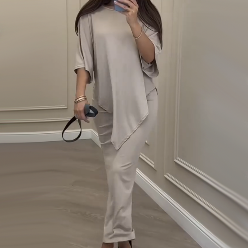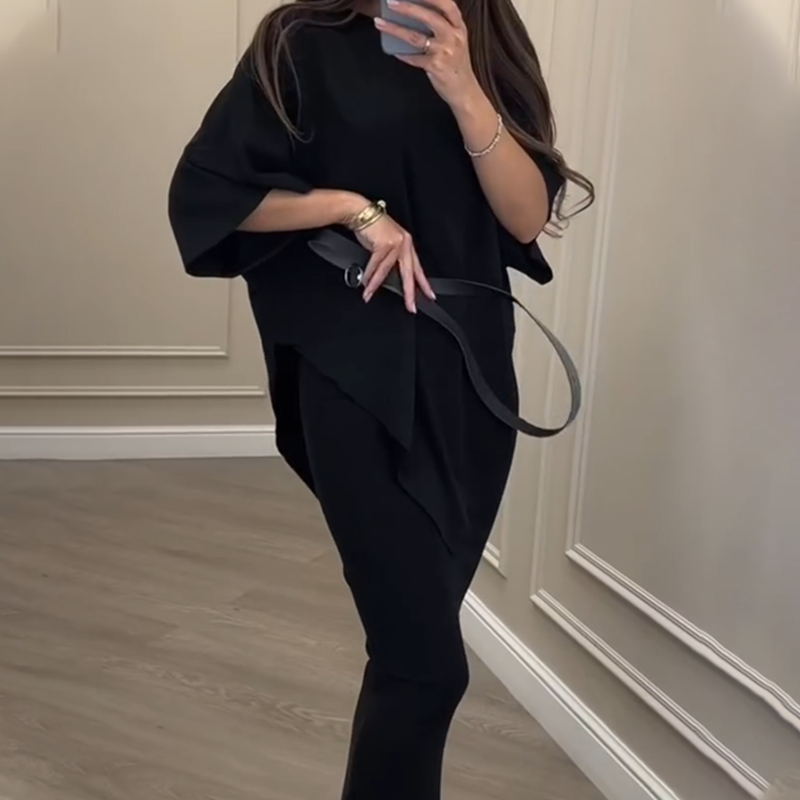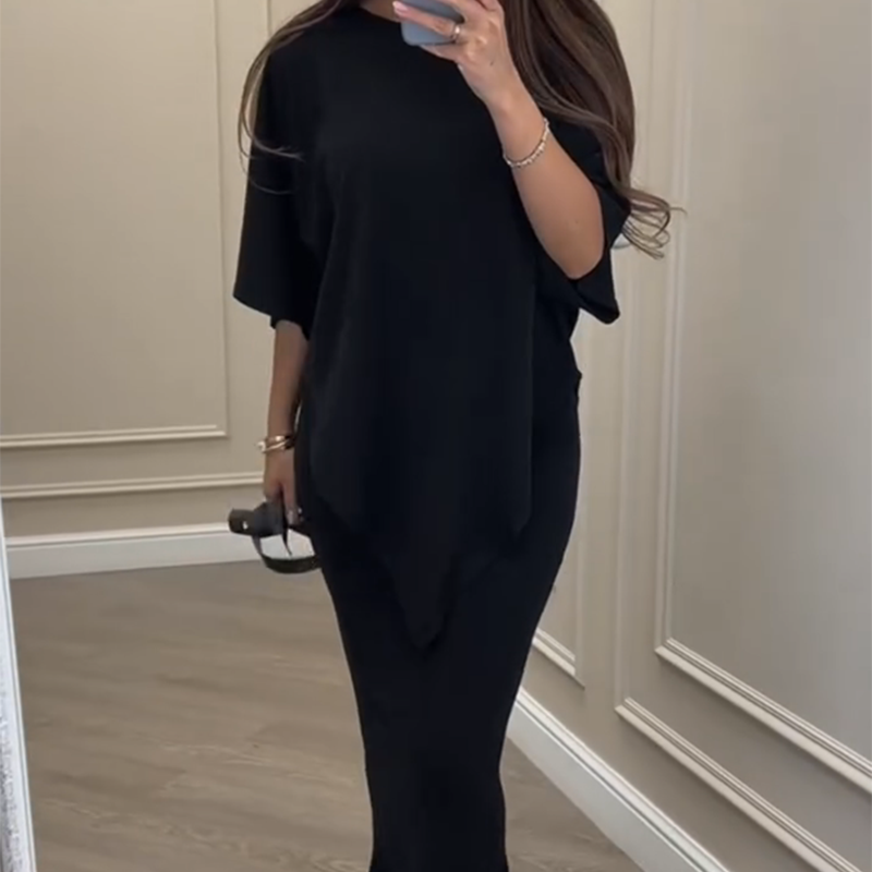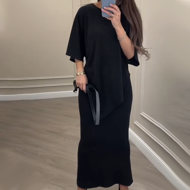 đ„°LĂ€ssiges zweiteiliges Set aus lockerem Oberteil und Rock fĂŒr Damenđ„