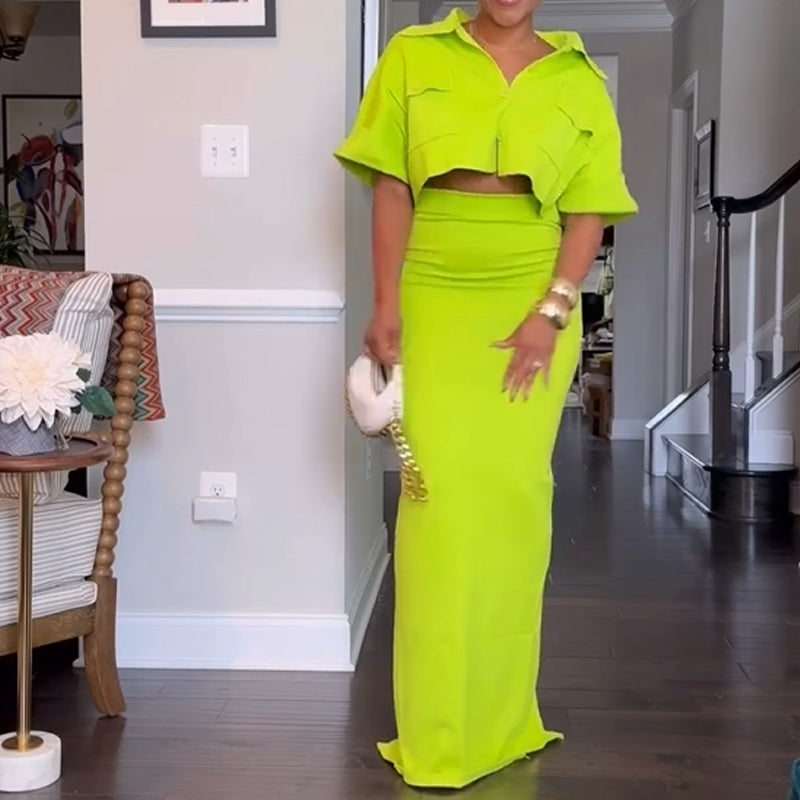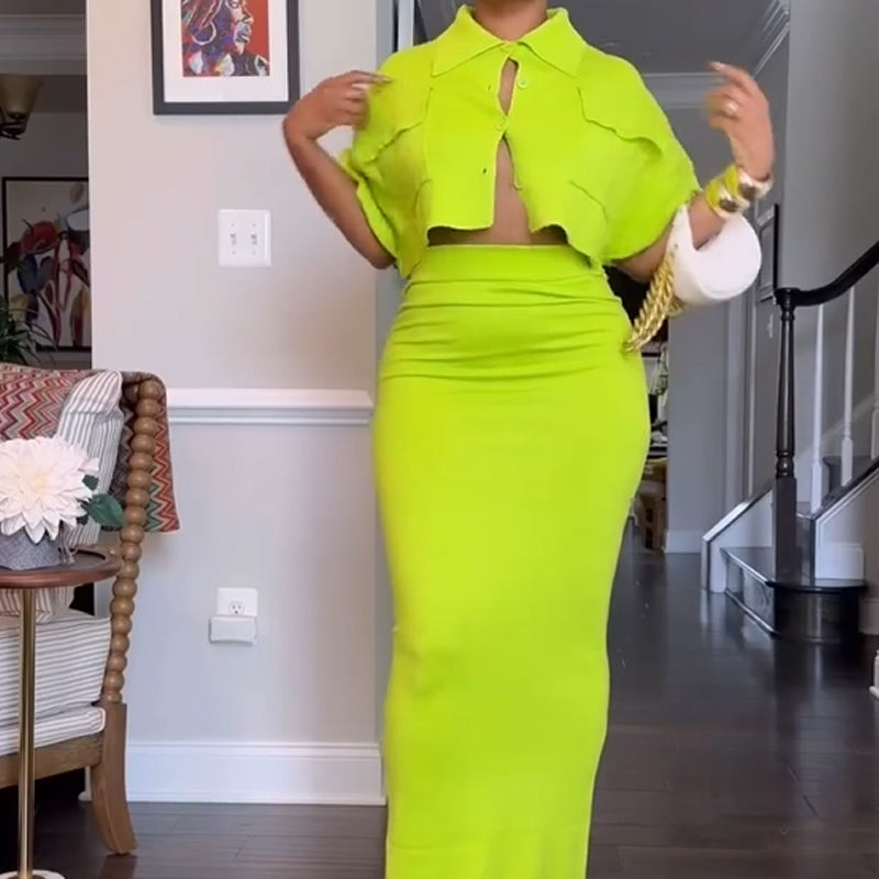 Lieferumfang: 1 × Damen zweiteiliges Set: Crop-Top und Maxi-Rock