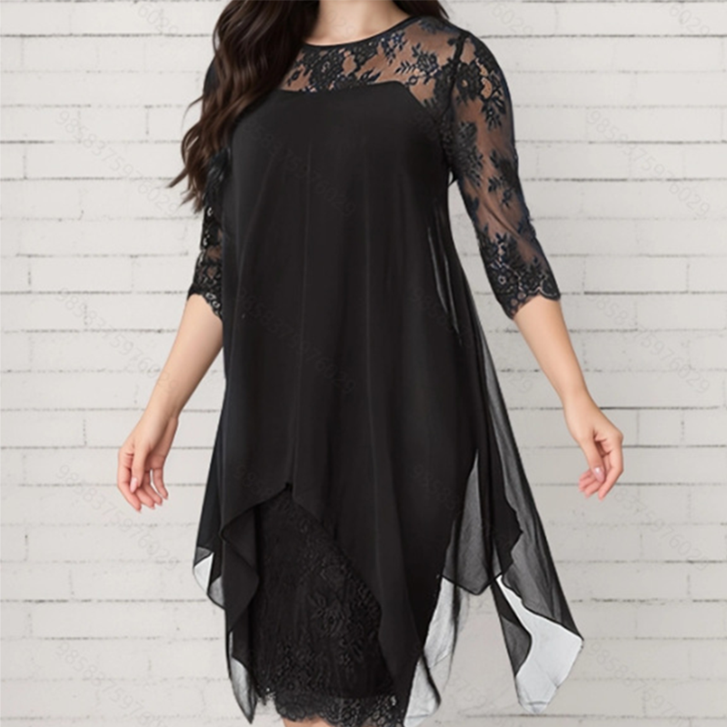đDamen elegantes Kleid mit SpitzenĂŒberzug und asymmetrischem Saum