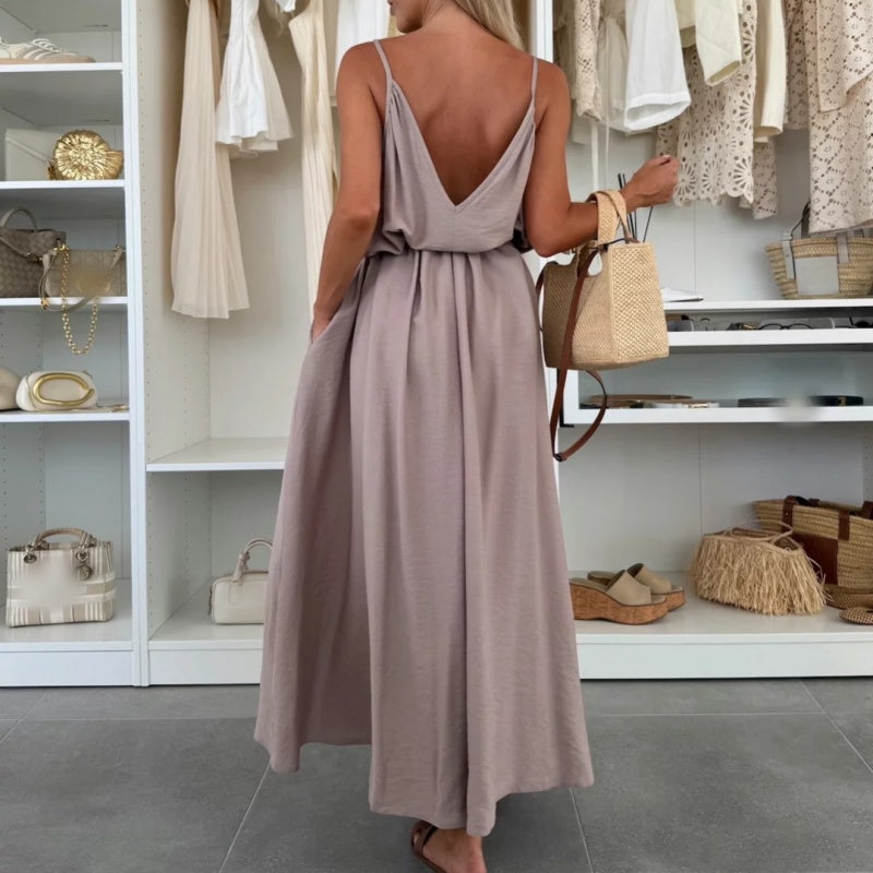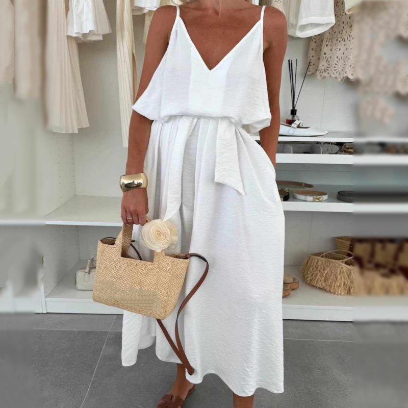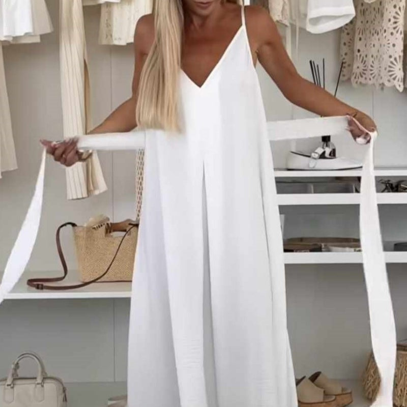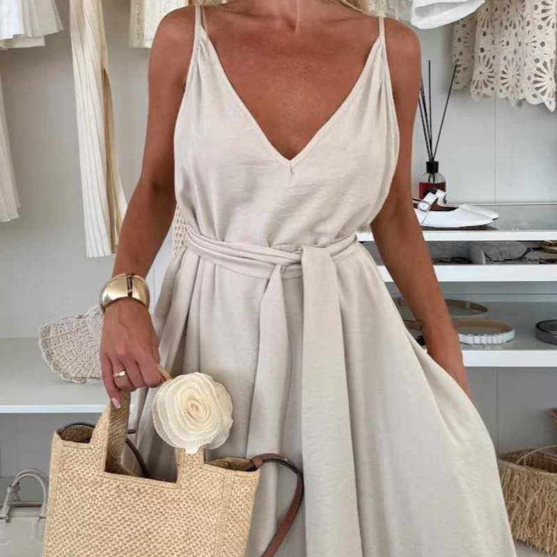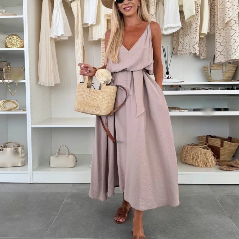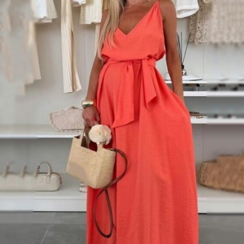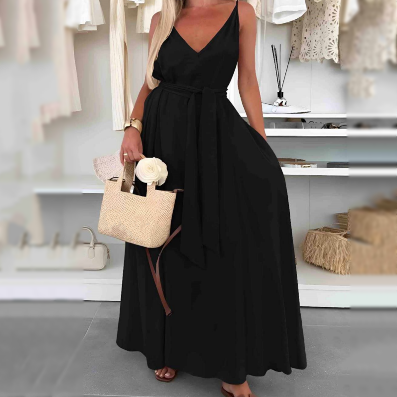💚Elegantes Maxikleid mit V-Ausschnitt und Taillenband für Damen