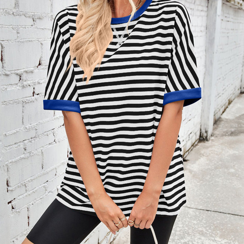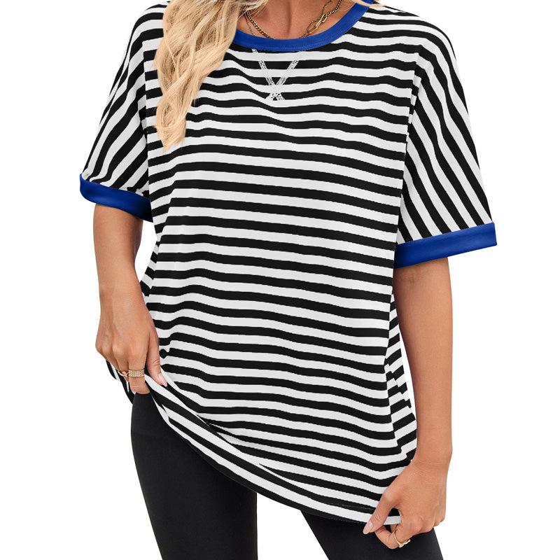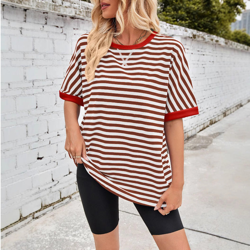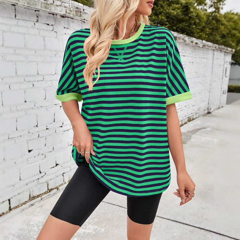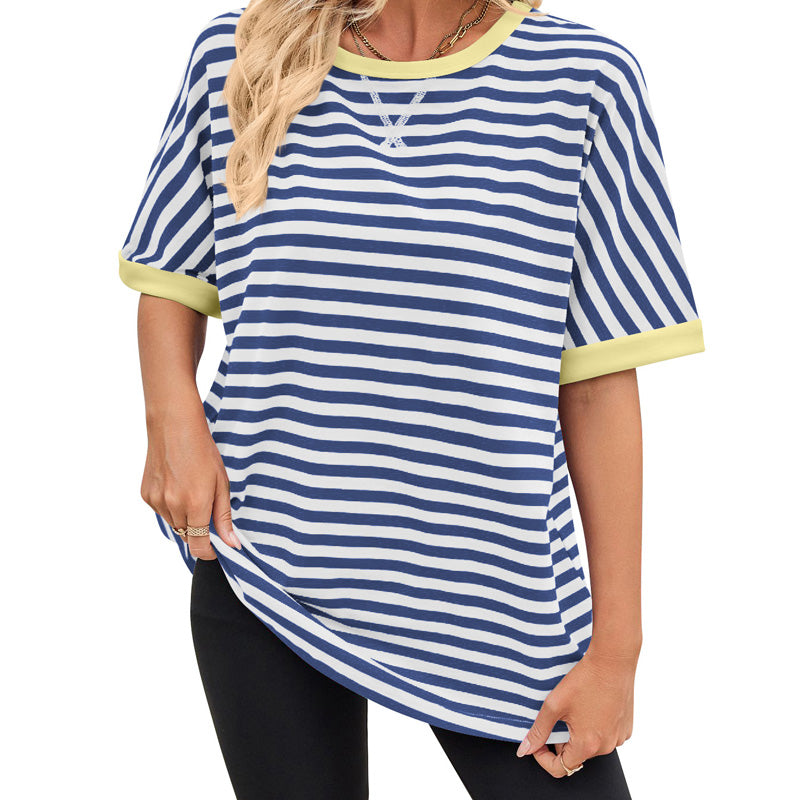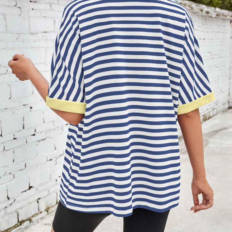 Lieferumfang: 1 × Gestreiftes Damen-T-Shirt mit entspannter Passform