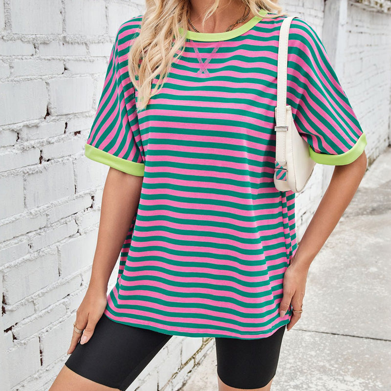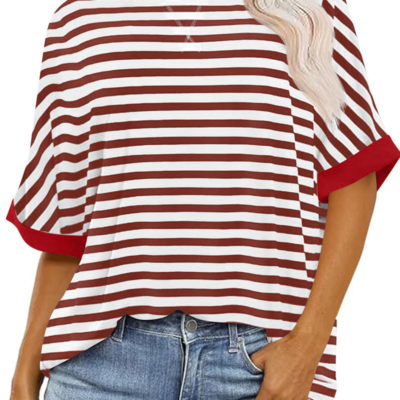 Kaufen Sie 2 gratis Versand🔥2025 Neu eingetroffen - 50% OFF🌺Gestreiftes Damen-T-Shirt mit entspannter Passform