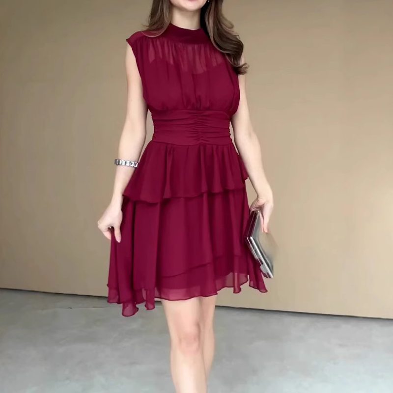 Lieferumfang: 1 * Damen ärmelloses Stufenkleid mit Volants