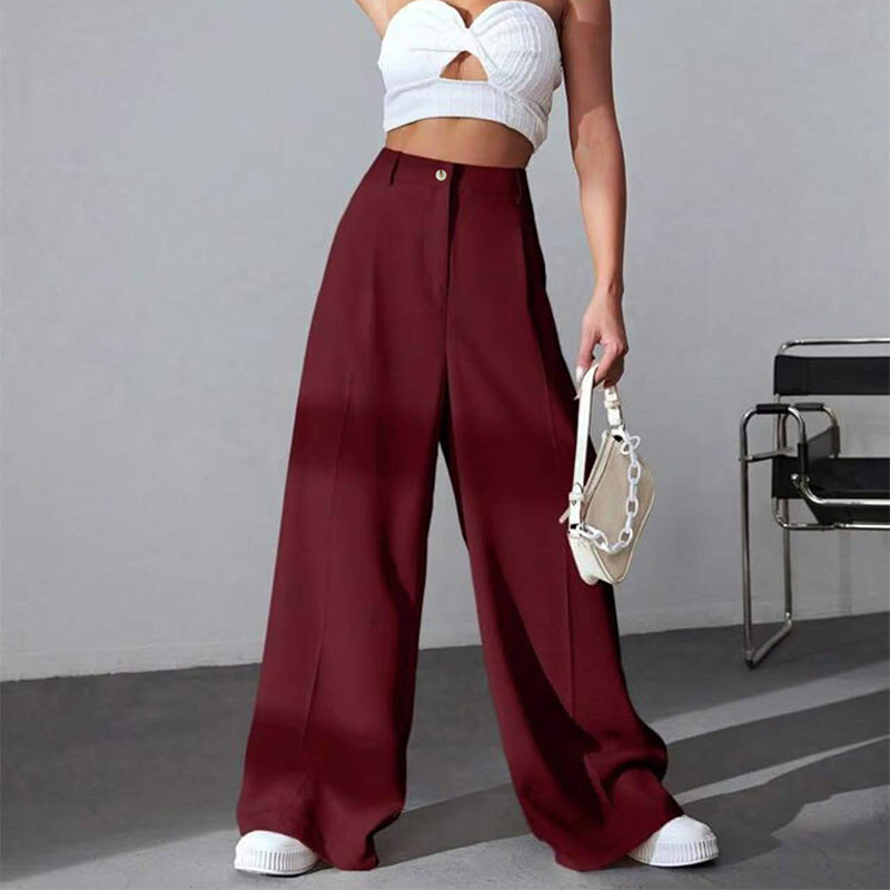 ✨2025 Neue Produkte💕Einfarbige Hose mit hohem Bund und weitem Bein für Damen