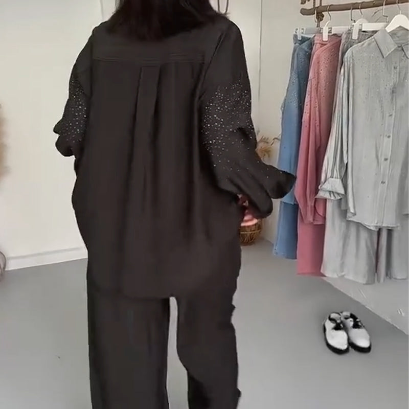 🔥🔥✨Glitzernde Damenhemden & Weite Hosen im 2-teiligen Set