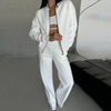 Damen-Zweiteiler im lockeren Schnitt - Jacke mit Reißverschluss und Hose mit weiten Beinen